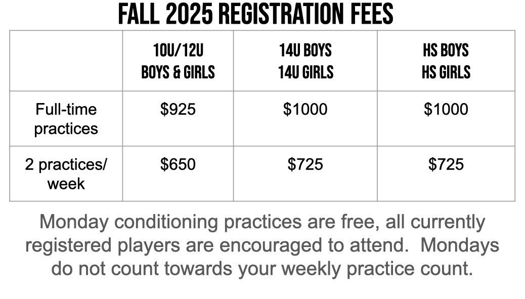 If you are doing a trial practice, please register for their 2 week free trial membership. Please make sure your membership dates cover the dates of your trial practice. Once you decide to sign up, you will need to get your player a membership at the Bronze level or higher.
