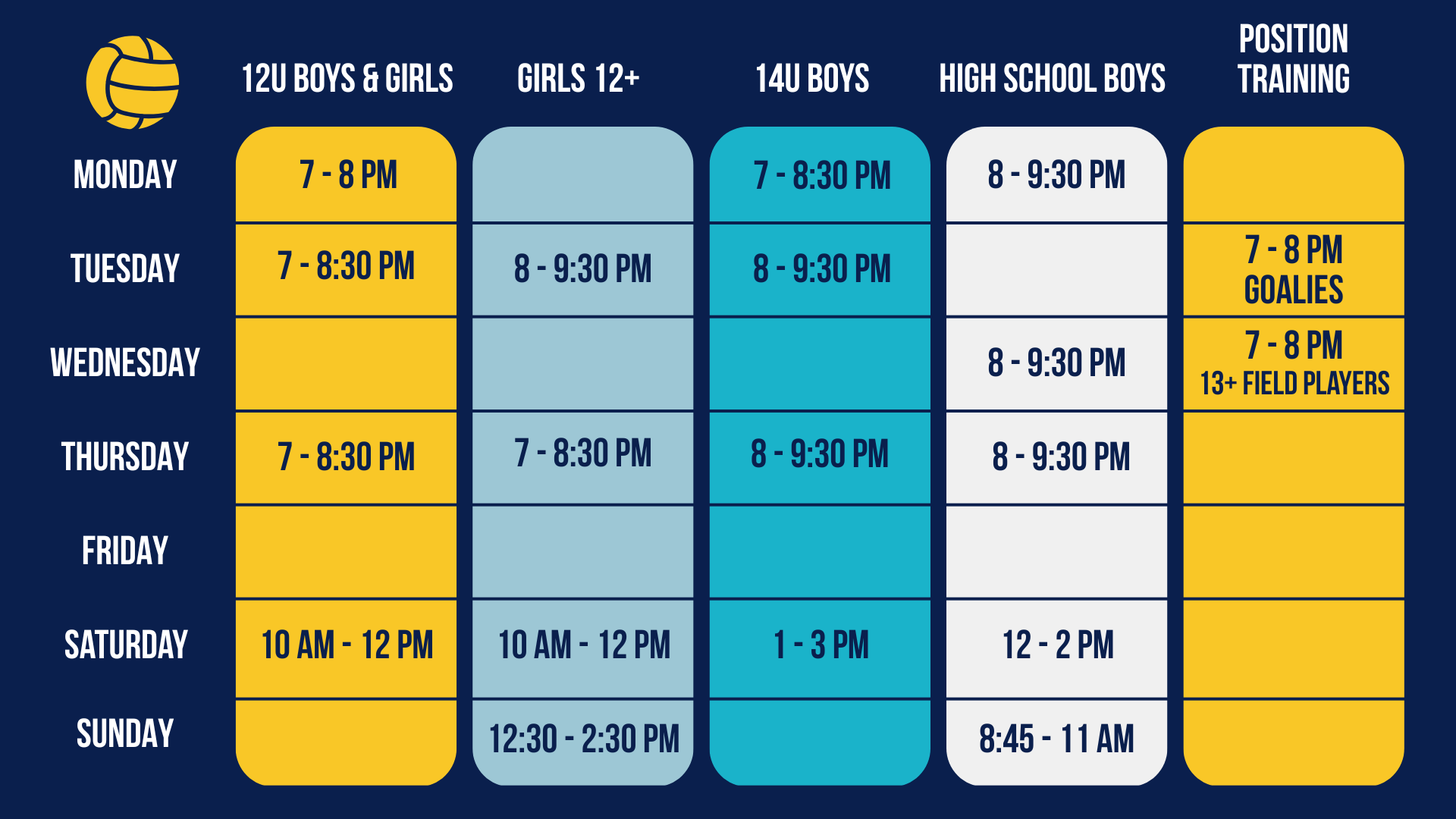 - Regular scrimmages and local games are included in the season. Families can choose full-time practices or 2 practices per week based on their availability/schedules.